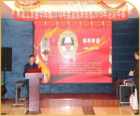 2019年1月11日黑龍江京盛華環(huán)保科技有限公司年會(huì)慶典下于當(dāng)日下午1:00在黑龍江大慶市瑞麟灣酒店拉開(kāi)帷幕;公司領(lǐng)導(dǎo)、全體員工、北京萬(wàn)邦達(dá)公司代表一同出席并見(jiàn)證此次盛會(huì)。