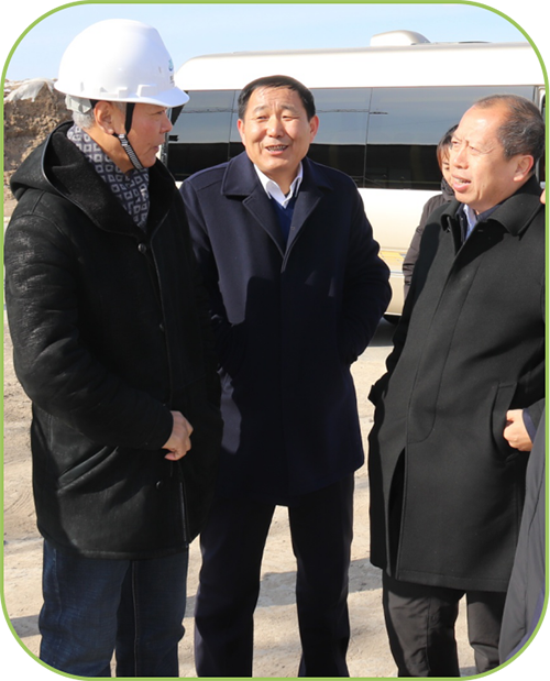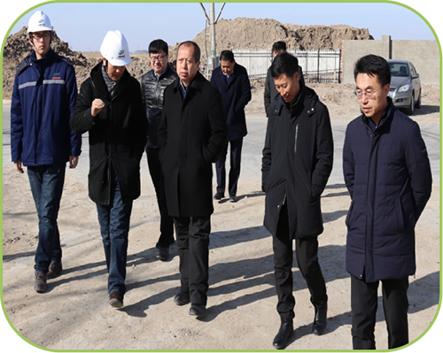 2019年2月15日上午11:30分,綏化市副市長劉野、綏化市工業信息科技局局長謝殿濤暨安達市副市長劉寶鑄等一行來到黑龍江京盛華環保科技有限公司“危險廢物集中處置及資源化”項目施工現場進行調研工作。