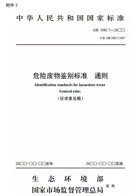 《危險廢物鑒別標準 通則》(征求意見稿)